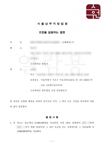 법무법인 승원의 요청대로 사건은 조정으로 회부되었고,