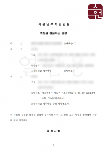 의뢰인이 원고에게 1,600만 원을 지급하라는 강제 조정 결정을 내렸고,