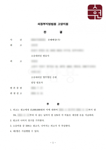 의뢰인이 법무법인 승원에 사건을 의뢰한 지 약 3개월 만에 재판부는 원고가 청구한 위자료의 50% 이상을 감액하는 결정을 내렸고,