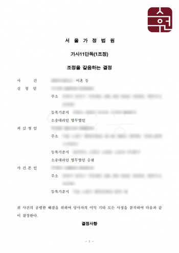 법무법인 승원의 조력으로 의뢰인은 아내가 청구한 위자료 전부를 방어하였고,