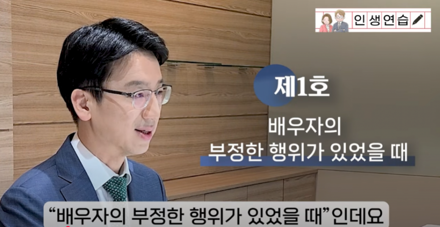 민법에 “부정한 행위”라고 우아하게 적혀있지만, 네. 바람을 핀 때를 말합니다.