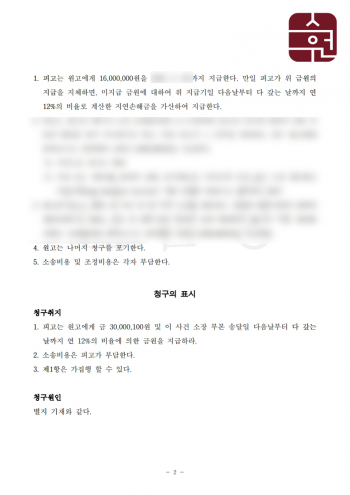 의뢰인이 원고에게 1,600만 원을 지급하라는 강제 조정 결정을 내렸고,