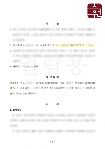 법무법인 승원은 의뢰인이 원고 배우자가 기혼자라는 사실을 전혀 알지 못했다는 취지의 답변서를 제출하였습니다.