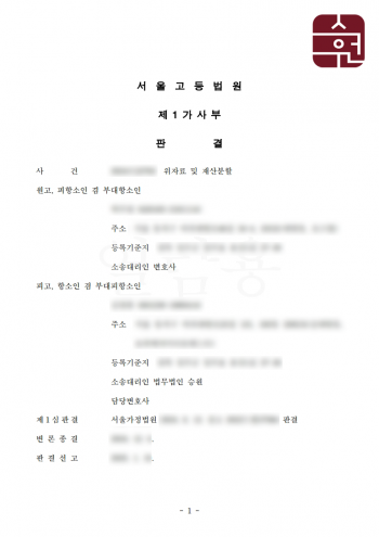 이혼 소송에서 재산분할에 관한 논의를 별도로 하지 않았던 의뢰인은 상대방으로부터 재산분할청구 소송을 당해 법무법인 승원에 사건을 재의뢰하였는데,