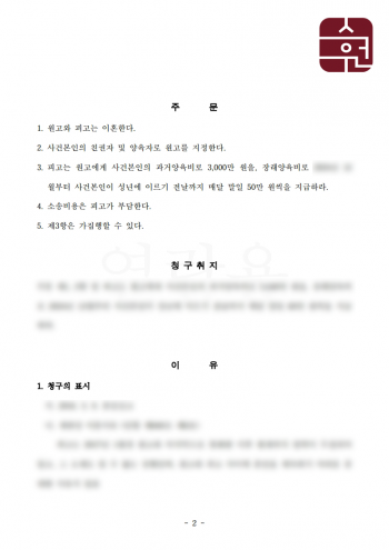 장래 양육비로 남편이 의뢰인에게 매달 50만 원을 지급하라는 판결을 내렸습니다.