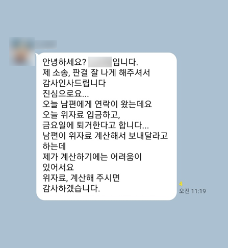 남편은 마지막까지 이혼 청구가 기각되어야 한다고 주장하였은다, 승원의 조력 결과 이혼이 성립되었고, 의뢰인은 남편으로부터 위자료 1,500만 원을 지급받을 수 있었습니다.
